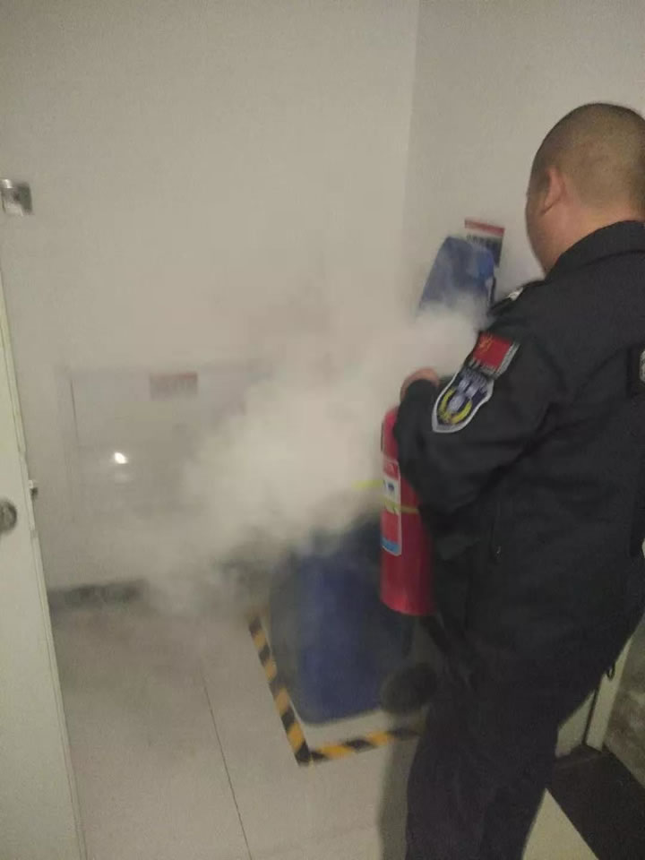 為了防止火勢蔓延,保安員及時通知執(zhí)勤的同事攜帶滅火器,在等待過程中,將垃圾桶附近的易燃品進行了轉移。同事趕到后,及時果斷對火源進行了撲滅。